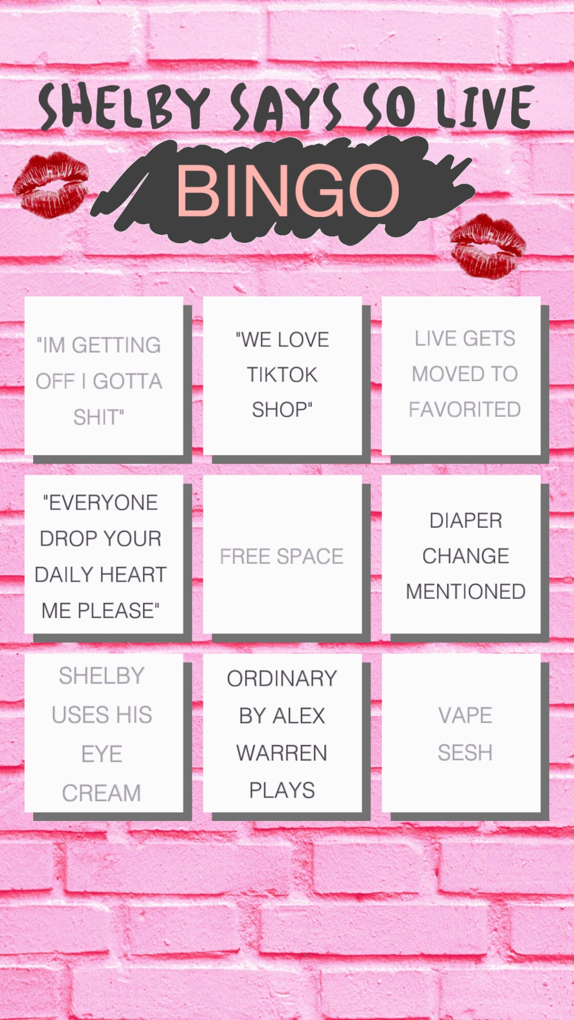 Shelby Says So Bingo Card